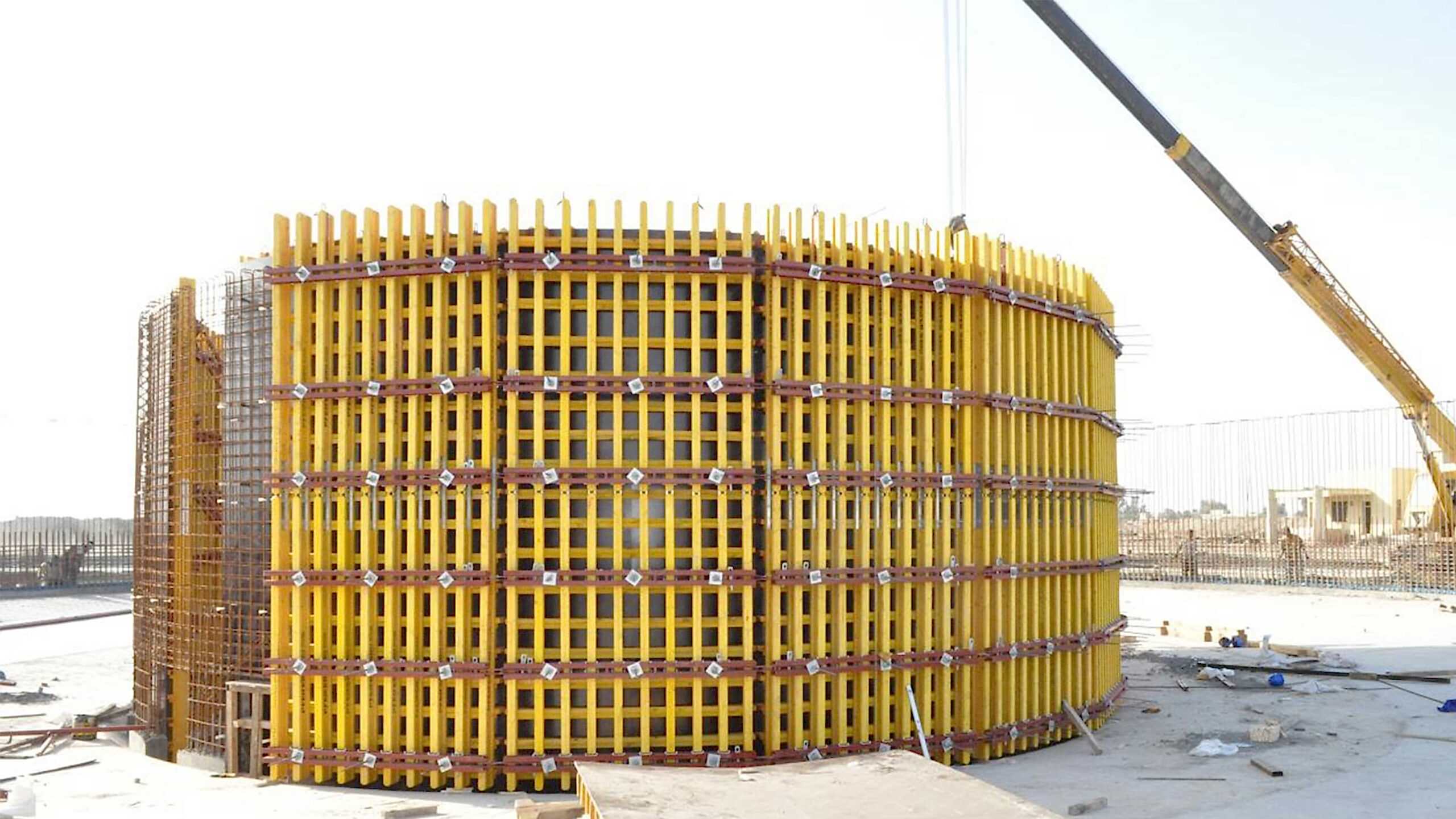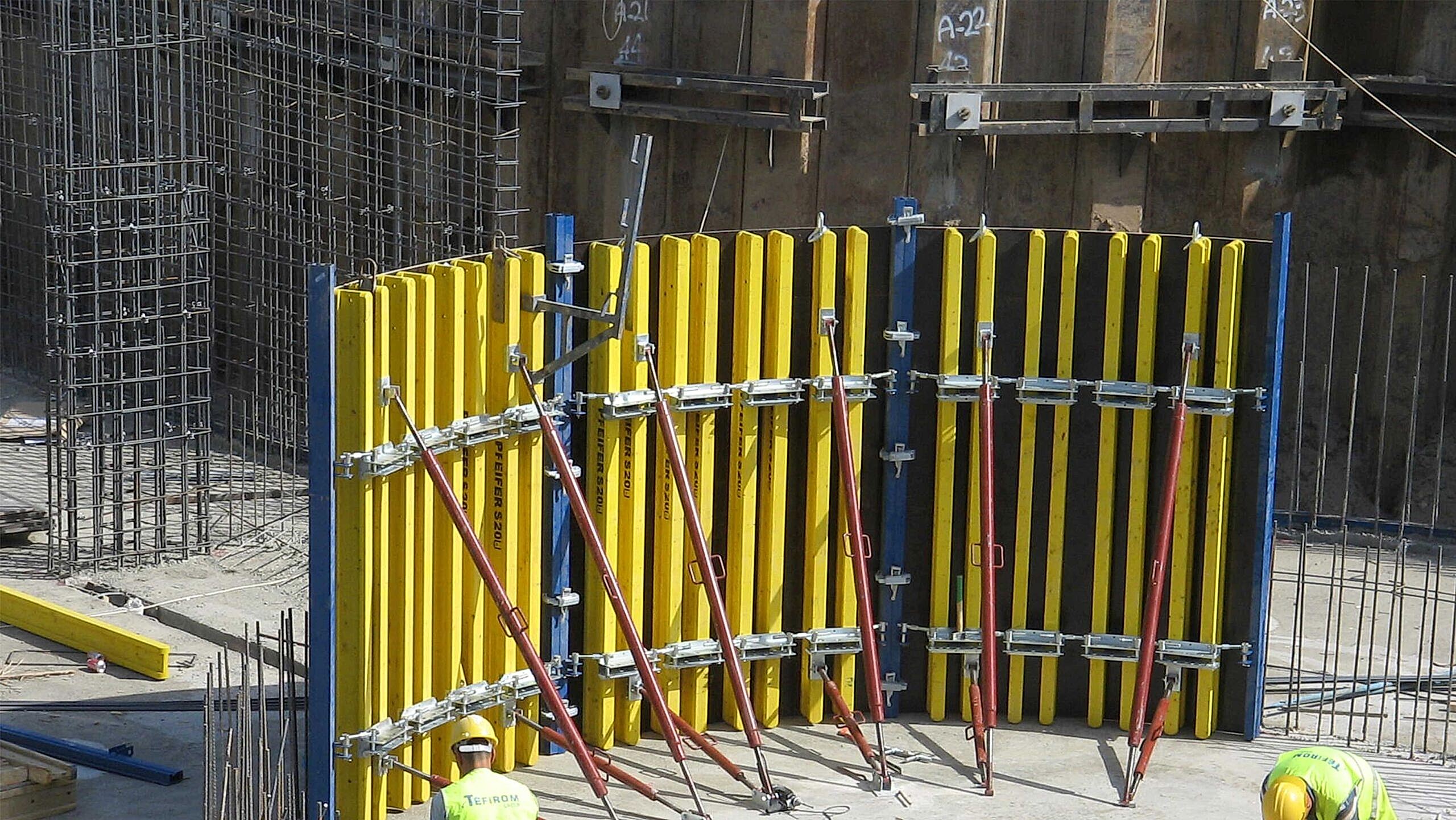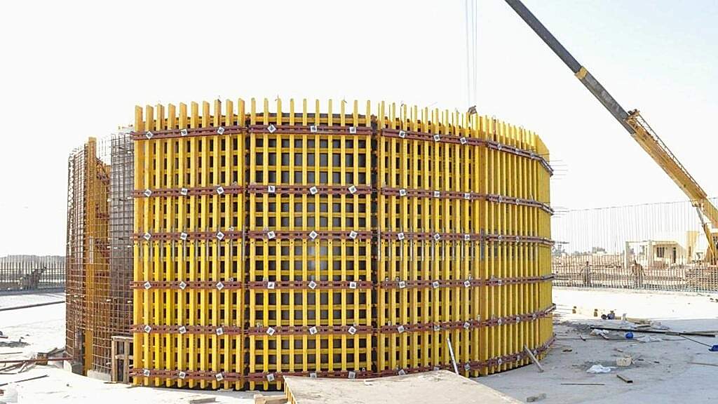 Kalıp; Fleksiwork Kuşak, Fleksiwork Kenar Profili, Ayar milleri, Ahşap Kiriş, Plywood ve bağlantı aksesuarlarından oluşur. Kalıp modüllerini projenizde bulunan perde çapına uygun olarak kesilen özel mastar sacla kolayca şakülüne getirebilirsiniz.